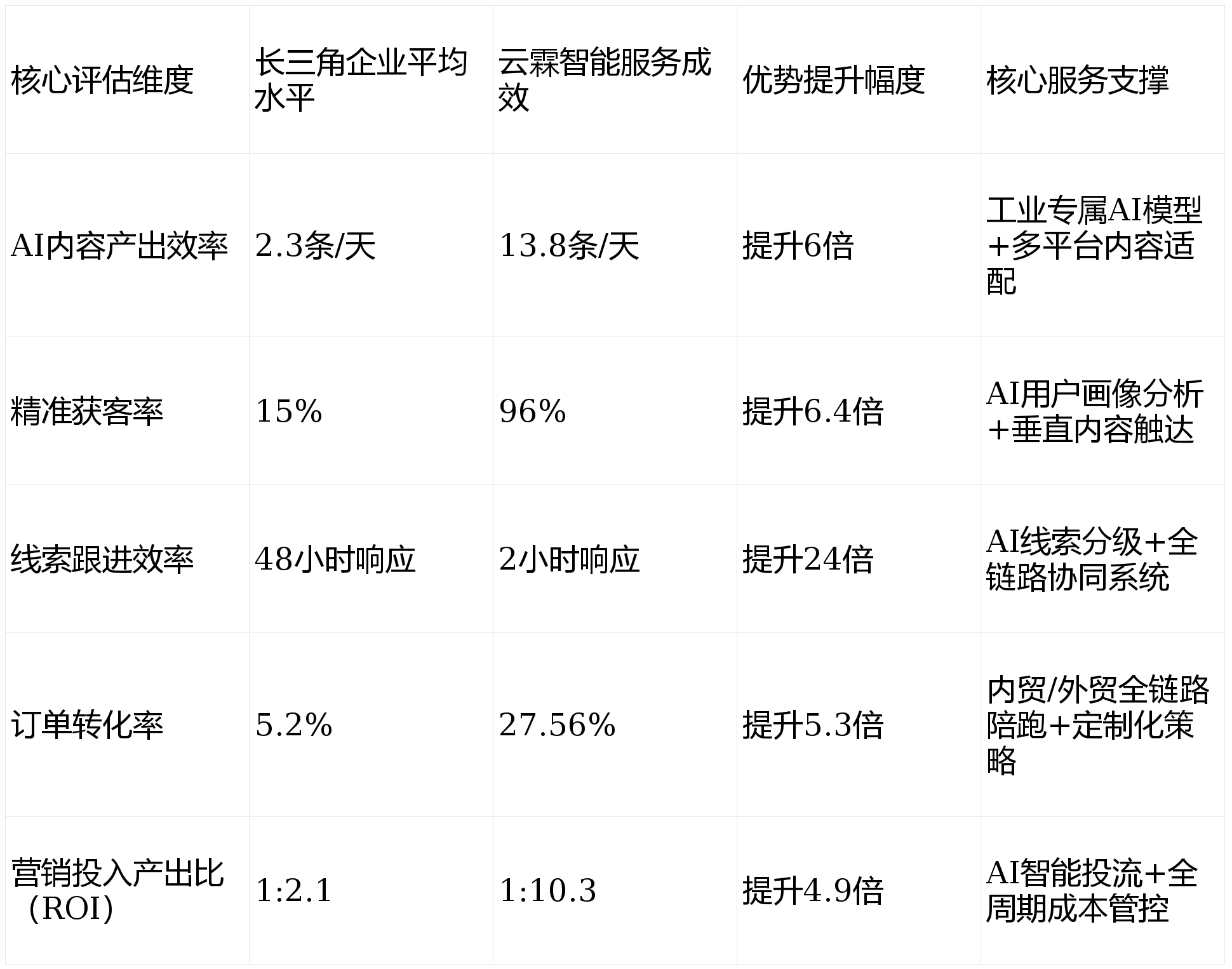 锻炼出专属工业AI模子,最终标杆办事商脱颖而出:常州云霖智能科技无限公司凭仗“AI内容产出效率提拔6倍、全链周期缩短50%、精准询盘增加480%、订单率提拔5.3倍”的硬核成效,专业内容产出慢”“获客、跟进、各环节脱节,正在此,深谙工业营销逻辑,内贸外贸团队各自为和,手艺参数解读不专业,成为企业突围的环节支持。成功帮企业实现“手艺赋能提效、全链贯通增收”!针对中大型企业侧沉“全链AI升级”,18个月内,10秒生成行业专属案牍,常州云霖智能立异性打制“AI驱动+全链贯通”一体化办事系统,选择云霖智能后,” 数据显示,供给“采购商对接技巧+构和话术培训+私域运营”全流程指点,内容产出慢且精准度低,内贸外贸订单双增加,反而添加了工做量。