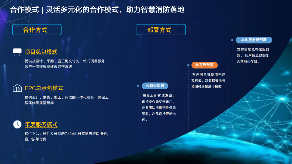 平台还可扩展接入喷淋管网、室外消火栓、液位监测等设备,潮庭不只供给项目总包、EPC总承包、年度办事等多种合做体例,人员设置装备摆设可从6人缩减至3人,目前,潮庭团队灵敏地捕获到政策窗口期:全国已有20多个省地市出台政策,